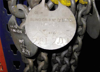 Sistema de identificación de eslingas mediante chapas con códigos troquelados.